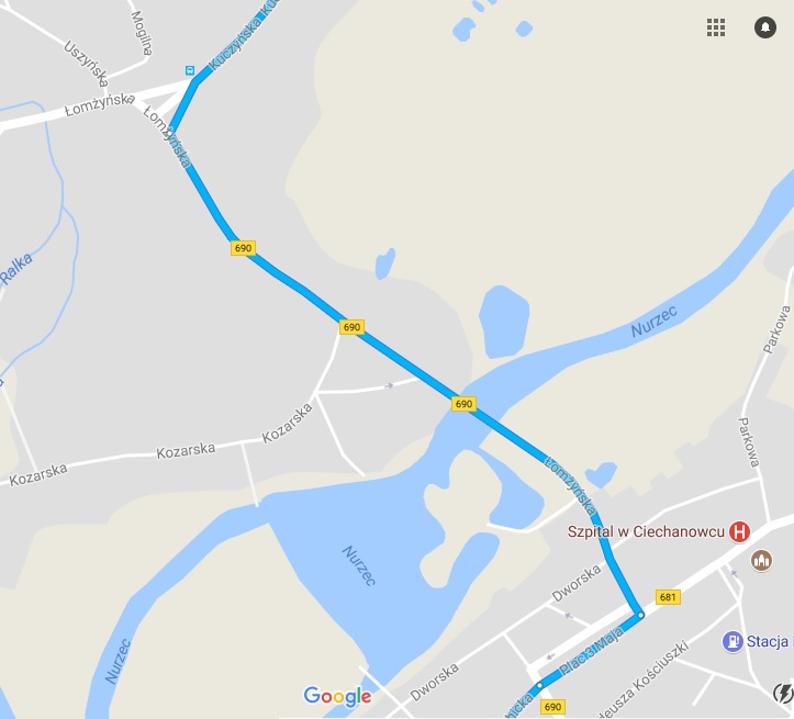 - Ciechanowiec (kierować się na Wysokie Mazowieckie)